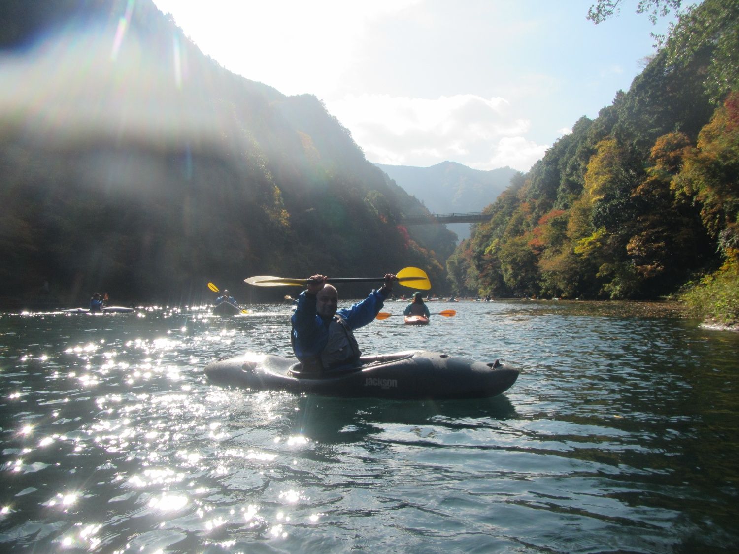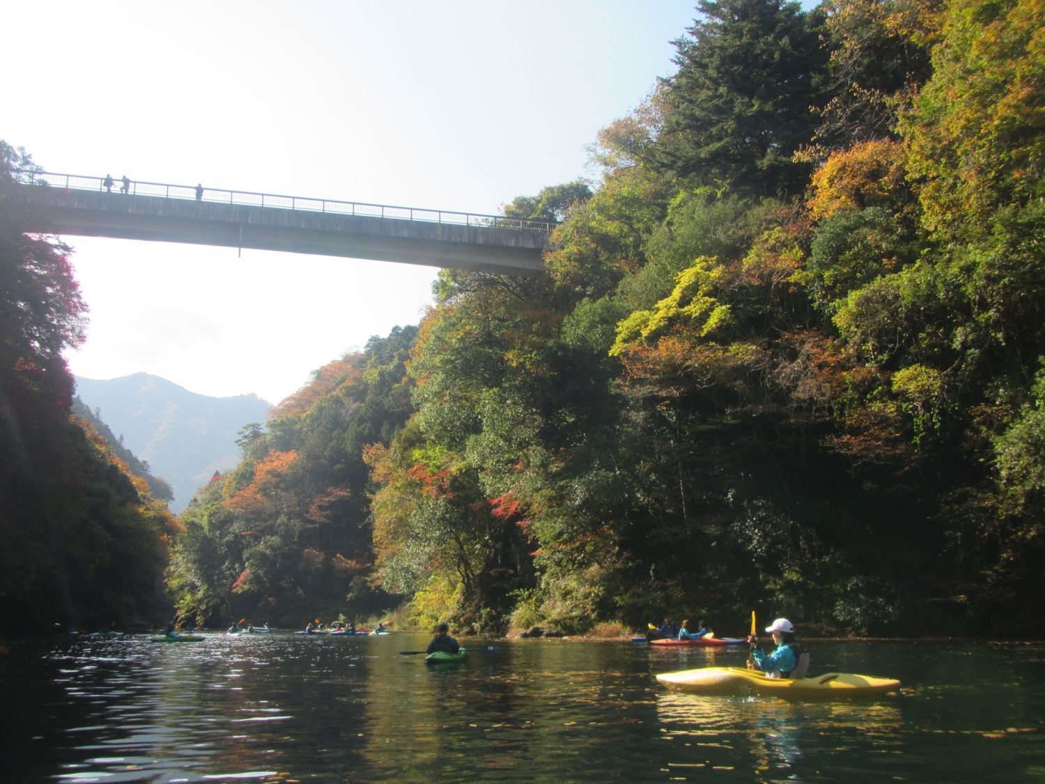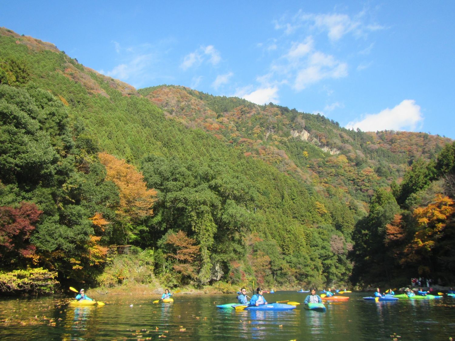 Kayaking through the beautiful autumn colors of the upper reaches of the Tama river followed by a visit to a riverside sake brewery.