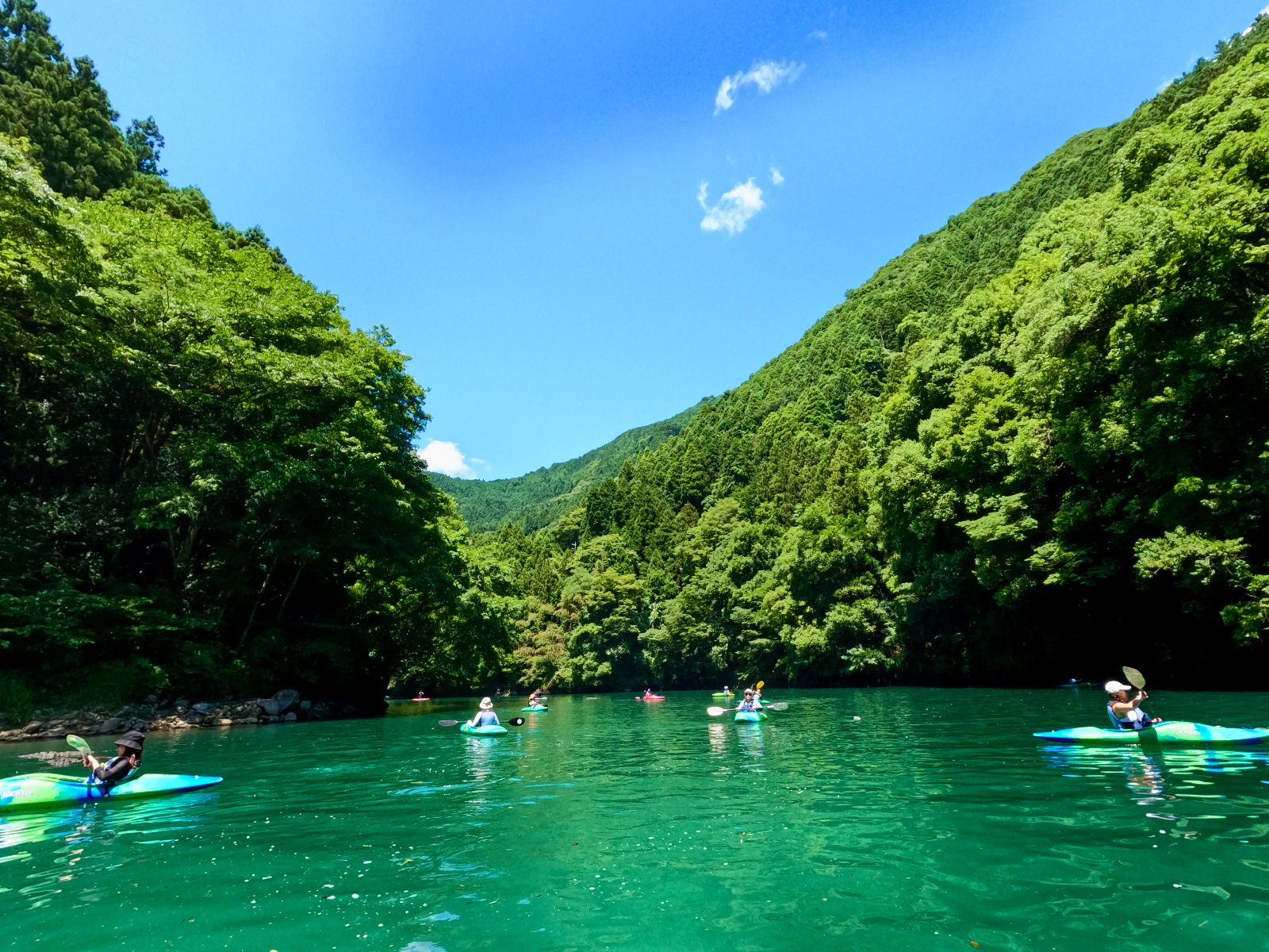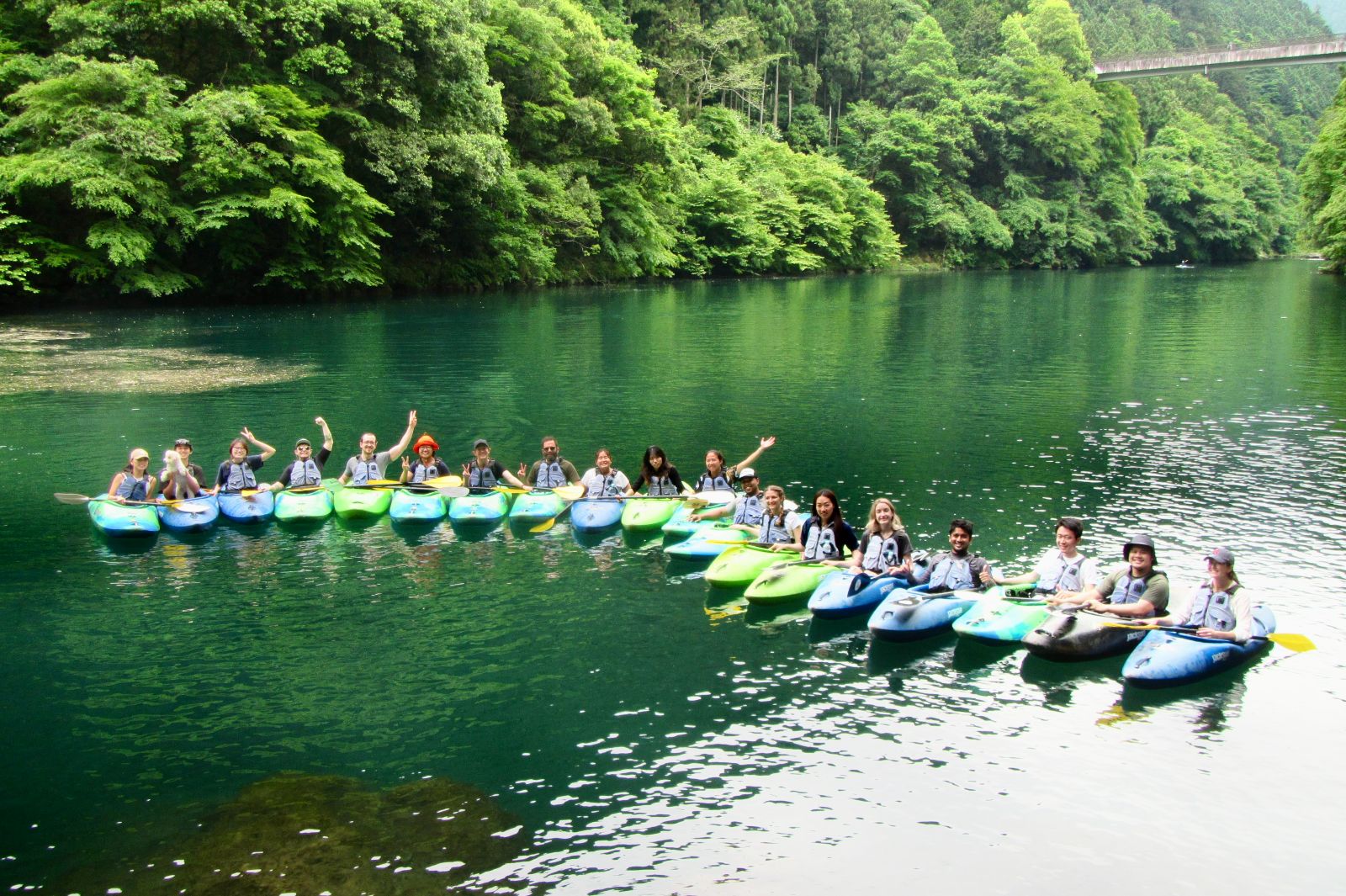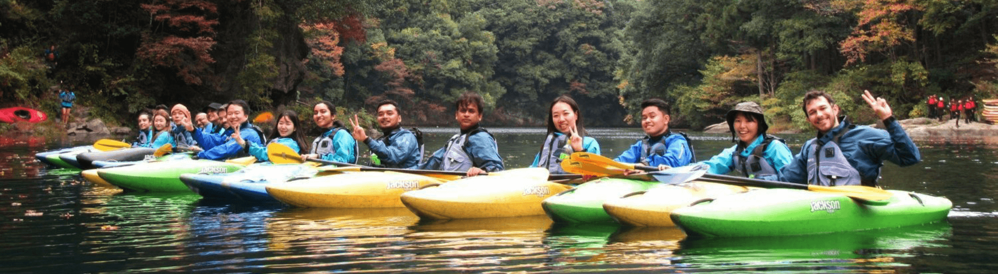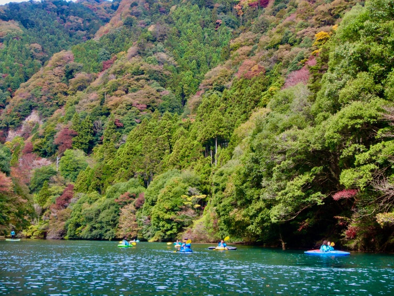 Kayaking and stand-up paddle boarding (SUP) are leisurely and fun ways to explore the area while taking in the beautiful leafy green surroundings. We will be on the Shiromaru section of the Tama River, a predominantly gentle, lake-like stretch famous for its incredibly clear, emerald-green waters.
